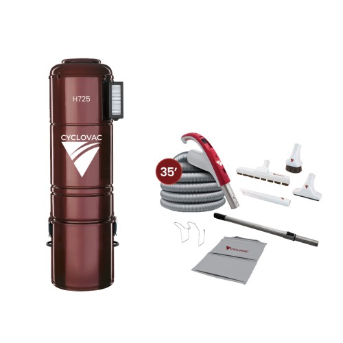 Aspirateur central H725 hybride avec ensemble d'accessoires 24V Super Luxe - boyau 35' (10,67 m) -
